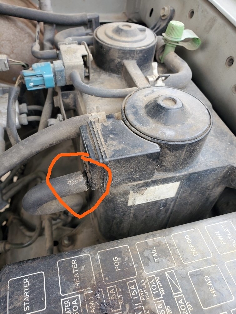 No, the hose and box is part of the system that removes the fuel vapors from the gas tank. When you fill up or the vehicle sets the fuel vapors are collected in the charcoal inside the box. Then at certain times the PCM will energize the purge solenoid and route the vapor into the intake system to be burnt. If the hose is leaking or has gotten bad from fuel vapor it isn't hard to replace, you just need a section of fuel safe hose to connect the two pieces just like the one that is there. Unless the connection is broken off or it is leaking fuel vapors it's still okay. It wouldn't cause anything brake related though.
