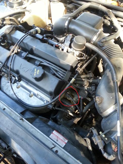 I need to know what this connection is on my engine it seems to ether have liquid coming from or somewhere around it and is making a hissing sound when the car is off while hot it seems to stop after cooling. Here are some pictures of it. http://imgur.com/ecooaxY and http://imgur.com/SoMOy4o