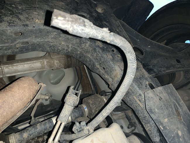 Looking at the plug, it appears to either be a connector for a wheel speed sensor or even a fog light. What color are the wires under the black tape? Does your vehicle have fog lights that work or none at all?