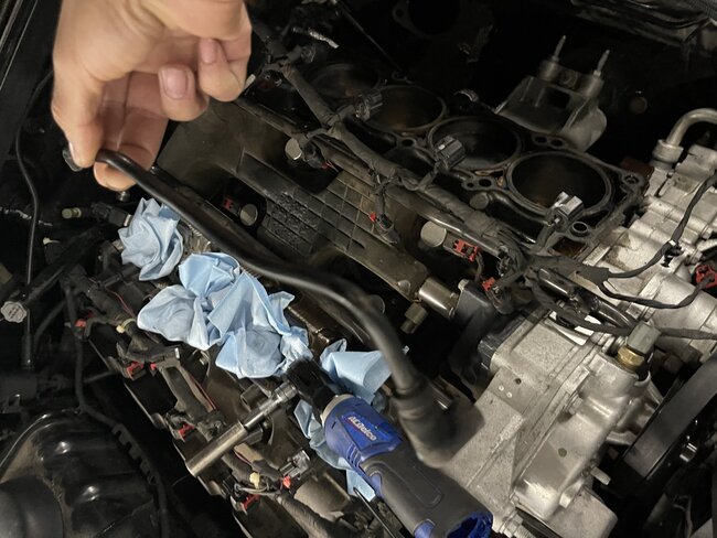 Broke while removing it, goes on top of intake and routes to this piece where my finger is pointing. Made off of plastic