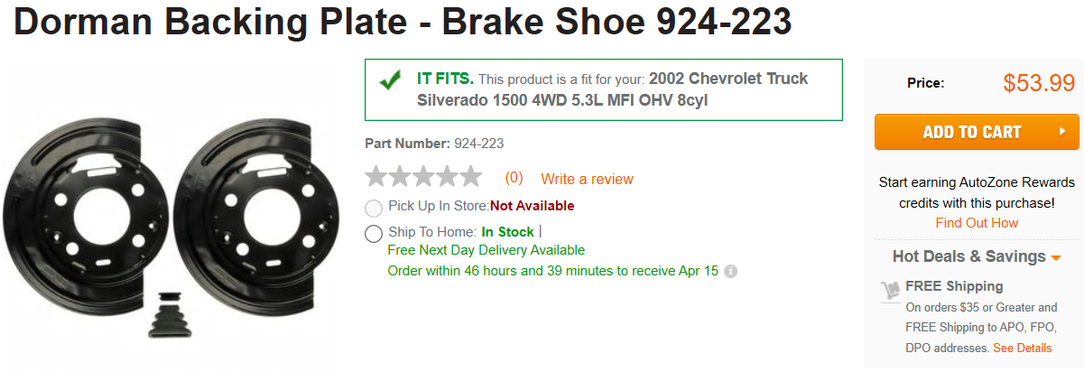 The screen shot I sent you was from AutoZone auto parts. Hope this helps and thanks again for using 2CarPros.