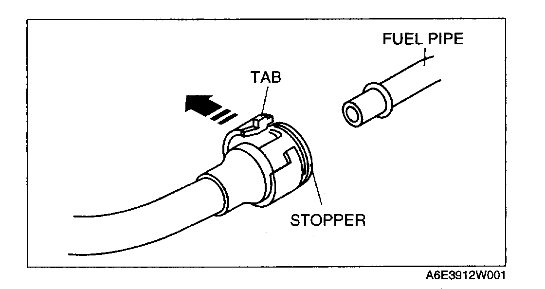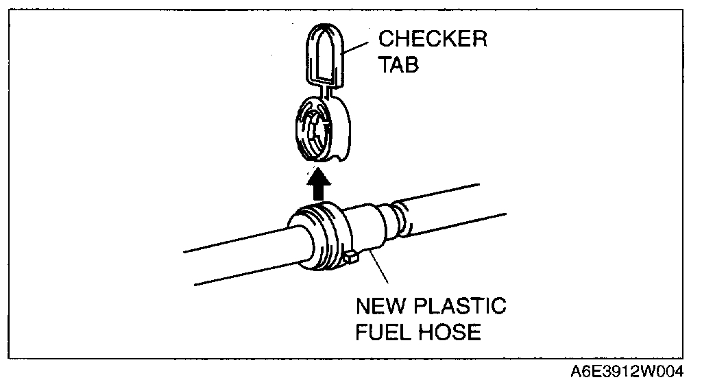 NOTE: A checker tab is integrated with quick release connector for new plastic fuel hoses. The checker tab will be released from the quick release connector after it is completely engaged with the fuel pipe.