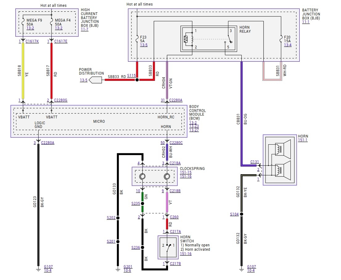 Do you guys know the name of the wire that's the next wire up from the horn and immediate horn connector on a car? Not this wire in the picture, but the one it connects to. It is one half of a Y wiring harness that comes from a large connector and splits, one end going to the horn. Thank you.