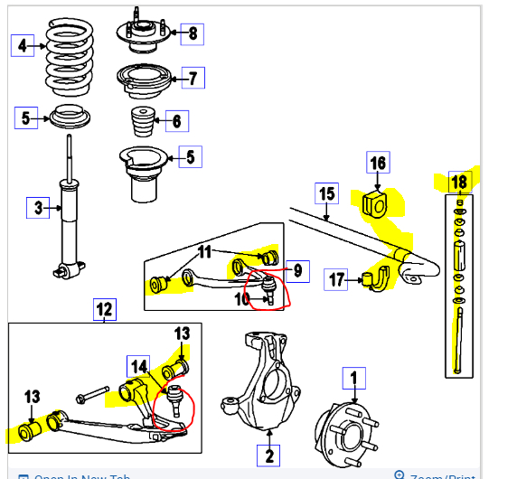 In pic 1, I also circled the upper and lower ball joints. If either one is dry, it can cause a noise.