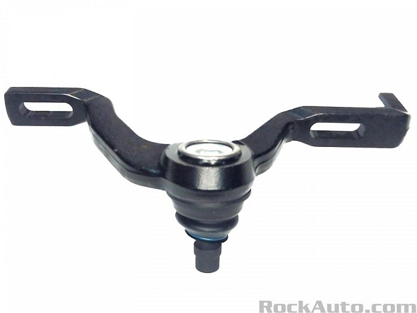 Ford had a nice idea to address that difficulty in making the adjustments match. The left wheel was set to put camber in specs, and to get caster as close to perfect as possible, then it could be left alone. On the right side, all that was needed was to set camber again, which is easy to do when you don't have to worry where caster ends up. Once camber was set by using those two pivot bolts, caster had a secondary adjustment provision in the two-piece upper control arm. The outer half was bolted to the inner half. When those bolts were loosened, the outer half could be slid forward or rearward to adjust caster without affecting camber. That was an excellent idea, but it has a major drawback. That is Ford intended that design to make it faster to adjust the alignment on the assembly line. The upper ball joint is cast as part of that control arm, and when it needs to be replaced, you can't buy that design. All that is available is the standard one-piece design. At that point you're back to the same frustrations this design has always had.