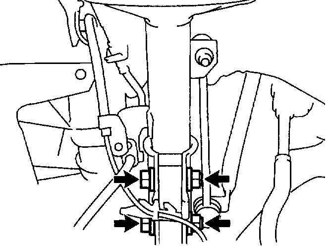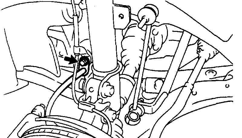 a. Remove the bolt, separate the sensor wire and flexible hose from the shock absorber.