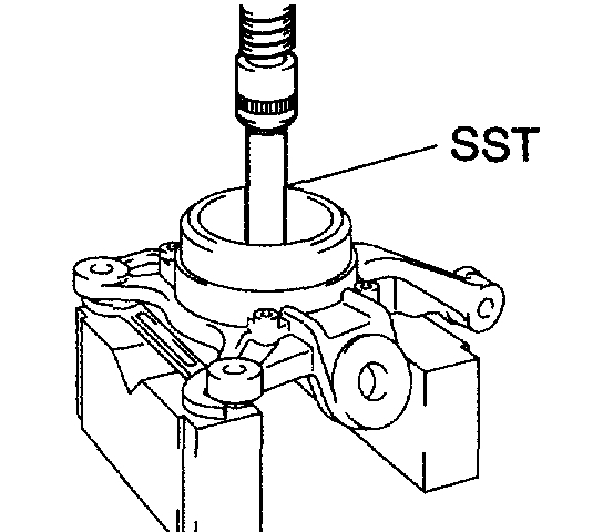 b. Using SST and a press, press the bearing until it contacts with the SST.