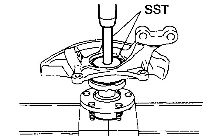 a. Using SST and a press, install a new bearing to the steering knuckle.