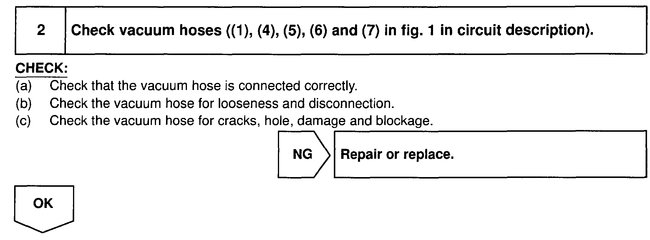 Take a look at the first pic. It indicates possible causes. You will see that vacuum or a disconnect wire can be the cause. Pictures 2 - 5 discuss diagnosis for vacuum/electrical.