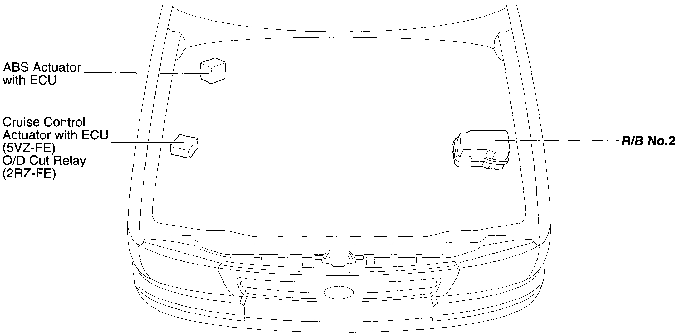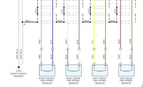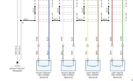Next is the ABS. There is one common ground for all wheels which is provided through the abs actuator with ECU. Now, the ground ls located on the right front fender. There will be two white wires with a black tracer. See schematic in piture 8. Check to make sure that wasn't damaged while working on the vehicle. Also, check the ABS 60 amp fuse in the under hood fuse box. Pictures 9 and 10 are included for you to see the location of the ABS fuse and the ABS actuator with ECU location.