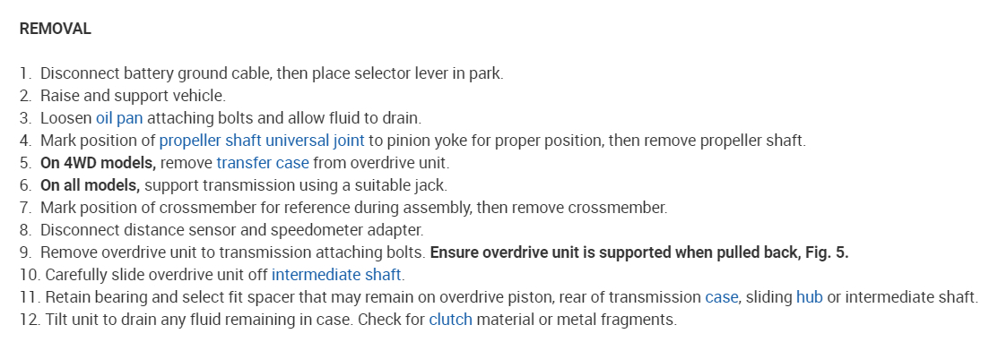 What happens is the overdrive unit itself wears out which bolts to the rear of the transmission. You will need to raise the truck up and remove the driveshaft first. Here is a guide to help you get started with instructions in the diagrams below to show you how to remove the overdrive unit: