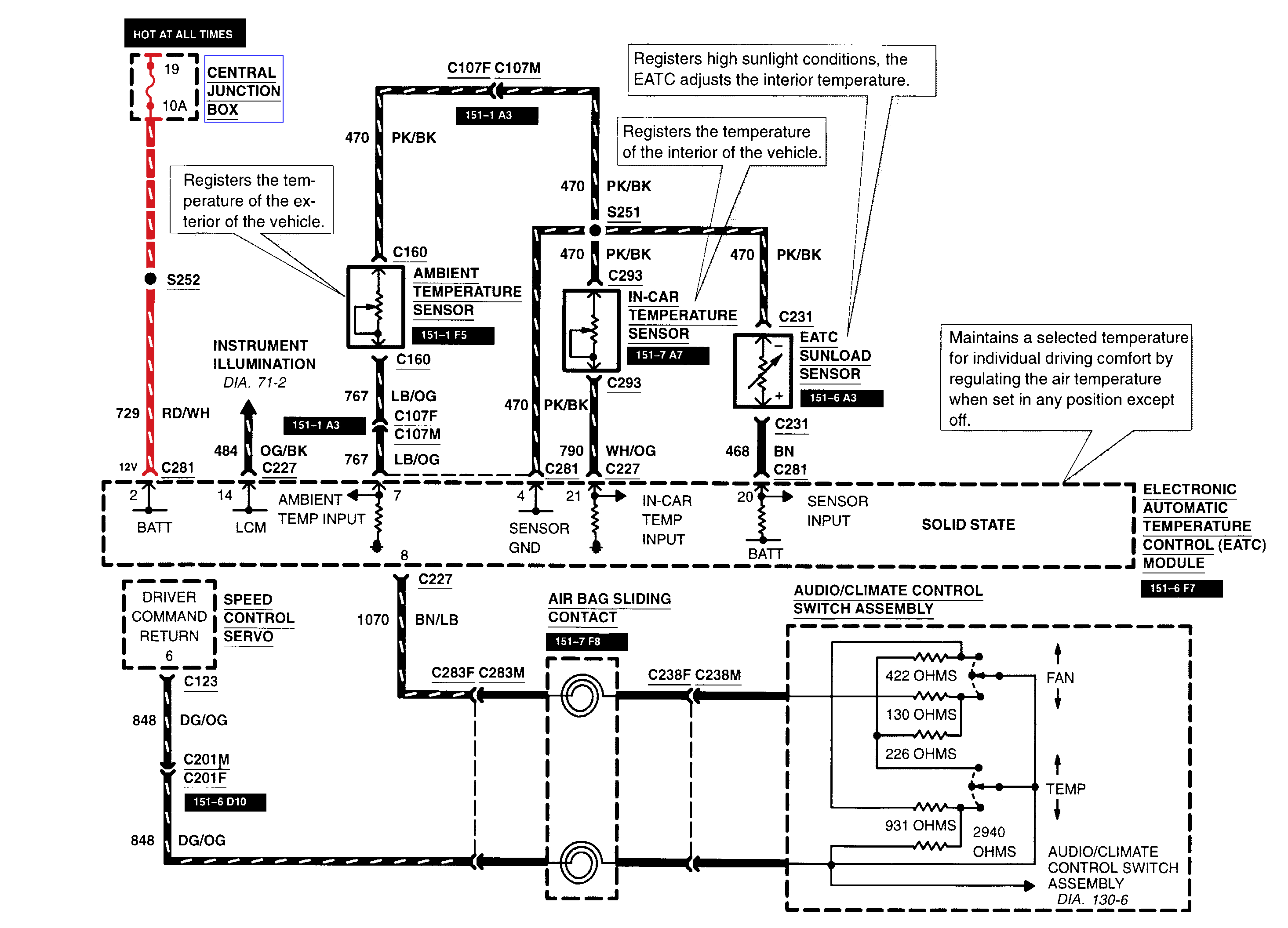 Fuses 6 and 19 at the central junction box under the driver side dash will be for the HVAC control head. I have attached the diagrams and the fuse location so you can have a better idea where to look.