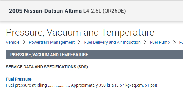 I attached the manufacturer's pressure specifications below. Try this and let me know what you find. Additionally, when the key is turned to the off position, see if the pressure drops quickly.
