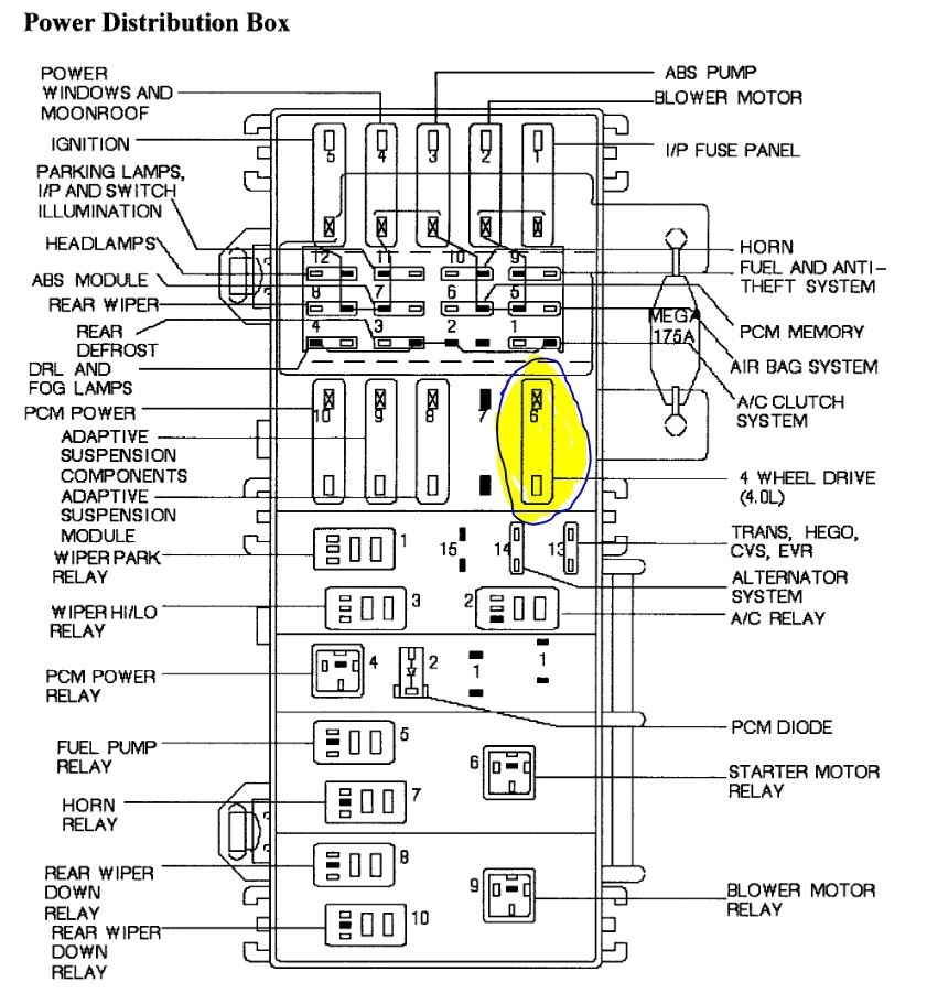 Or possibly even easier, would be to remove the fuse that powers that system. That would be fuse 6, a 20 amp maxi fuse in the power distribution box. It powers the transfer case relay and should shut the system off.