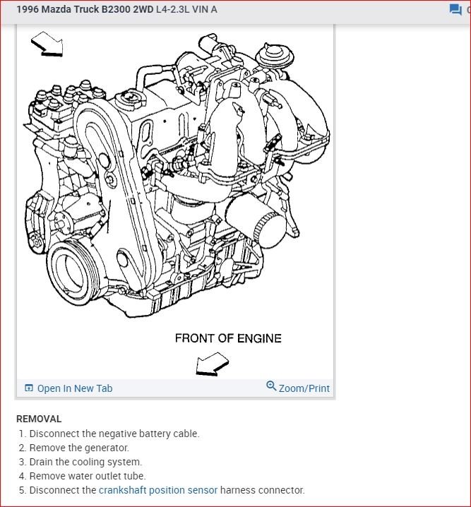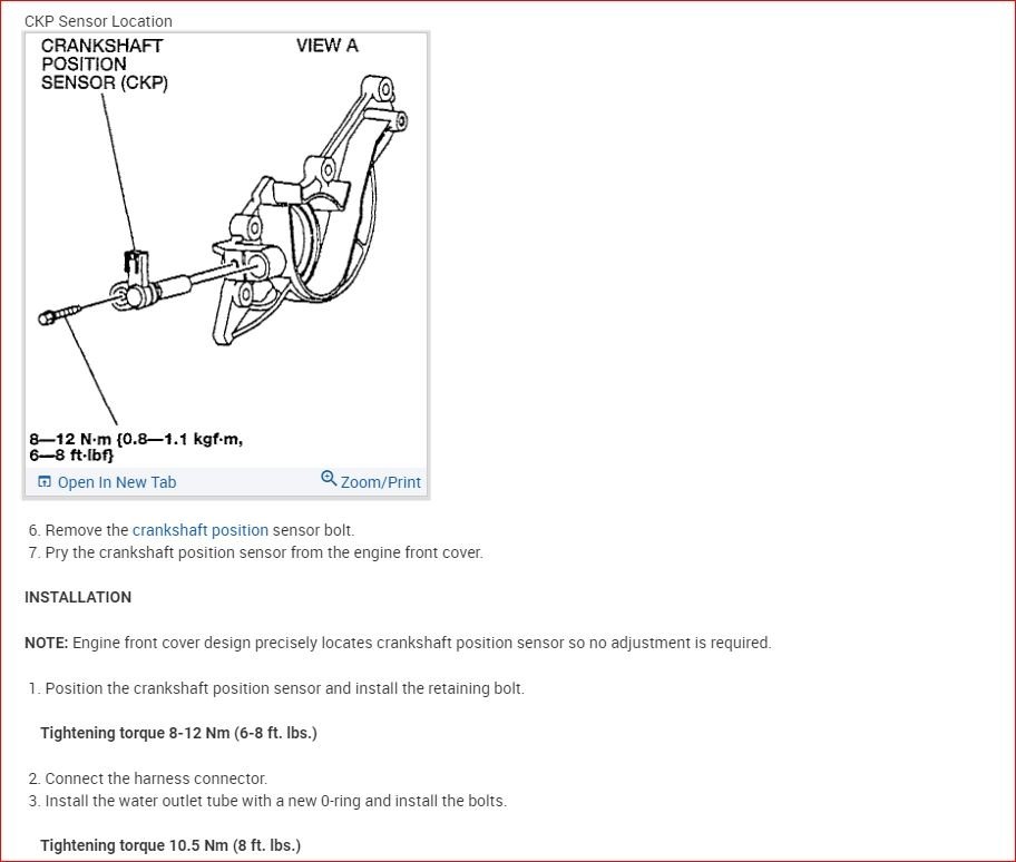 from front of engine. To install,  reverse removal procedure. See TORQUE SPECIFICATIONSÂ. Ensure coolant level is correct.