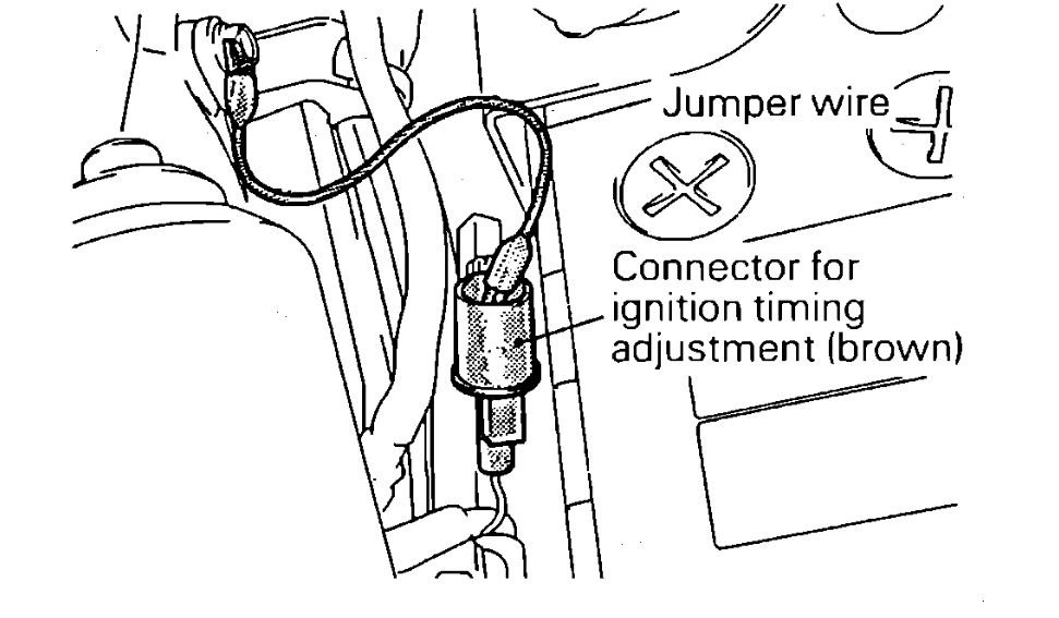 3. With the engine OFF, ground the ignition timing adjustment terminal with a jumper lead.