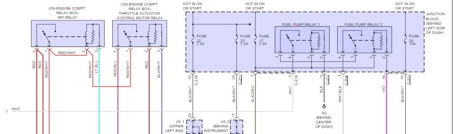 The car runs very good until u go above 3500rpms then check engine light comes on an when u do a computer diagonostic check trouble codes p1235 an p1238 comes up saying fuel pump out of range an fuel pump secondary circuit out of range I cant find the two fuel pump relays especially the secondary one can u help me