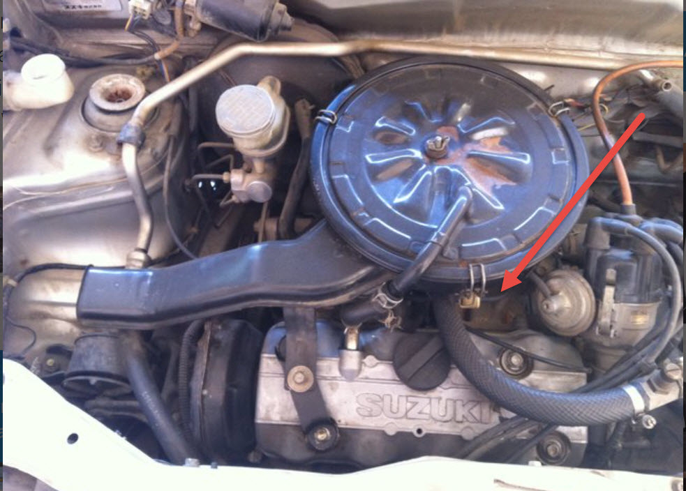 Hi sir, can you tell me please that where is intake mounted on the engine? Is it the black device which looks like fry pan? And from where the intake sucks air because to the next the fender is closed. So how can air enter in it? Waiting for reply. Thanks indeed.
