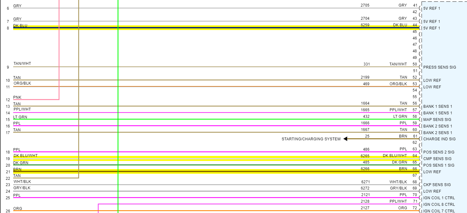 Hello, the camshaft position sensor is in an odd place on this one, it's right above the harmonic balancer (Crankshaft pulley). I'll post diagrams of its location and wiring colors. But it's on the front of the engine.