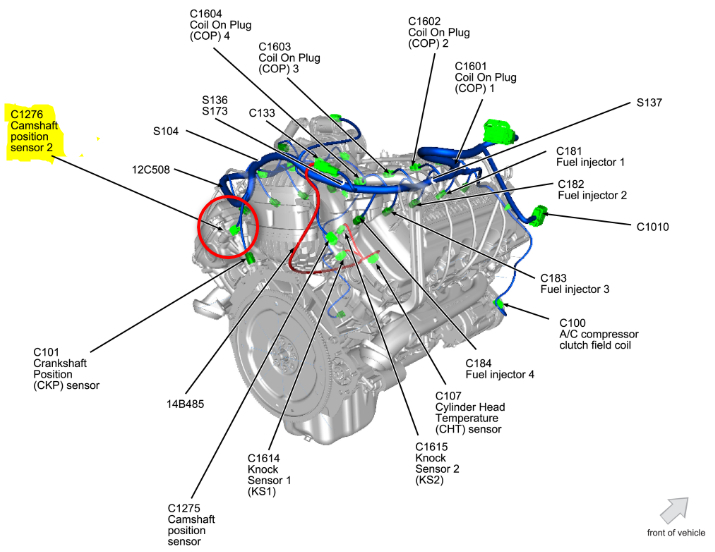 The sensor is located at the back of the left bank, driver side, cylinder head.