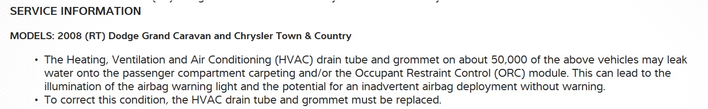 If this was built between june 07-jluy08 call dealer as there is a safety recall for a bad drain tube and it does exactly what you are talking about. It ruins the abs module. A new tube and grommet have to be installed. So check with dealer first, they may replace for free if not I have sent pics if you have to replace it yourself along with part numbers from Chrysler. I have left out a few details like push pins, an d after replacing parts due to space.