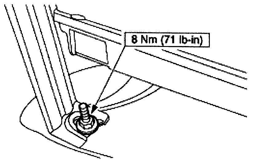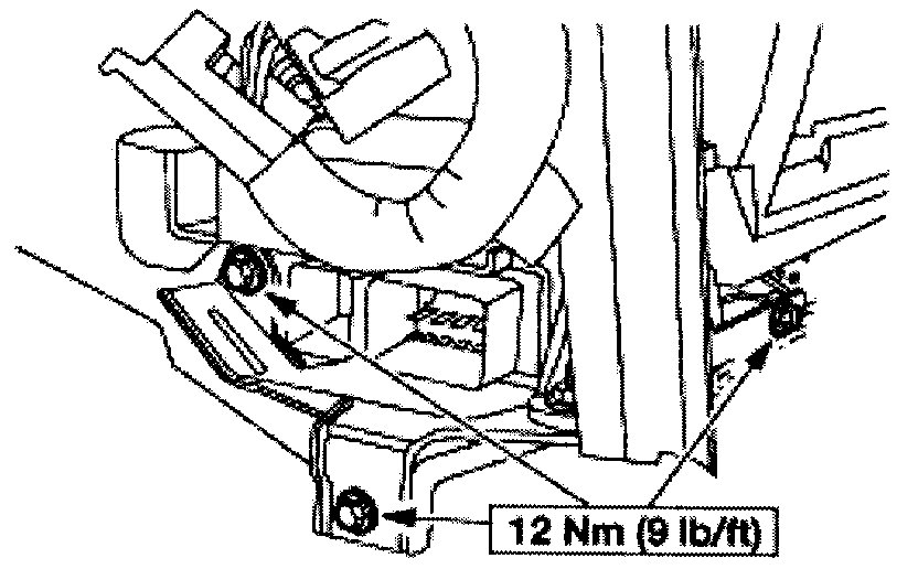 5. Remove the LH instrument panel lower nut and position the brace aside.