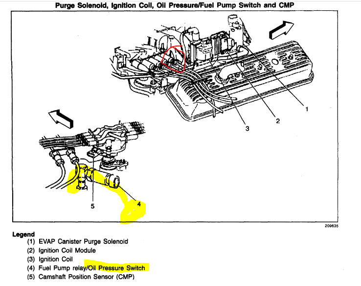 Where is the Oil Pressure Sensor, engine is a 5.7L Vortec 7400.