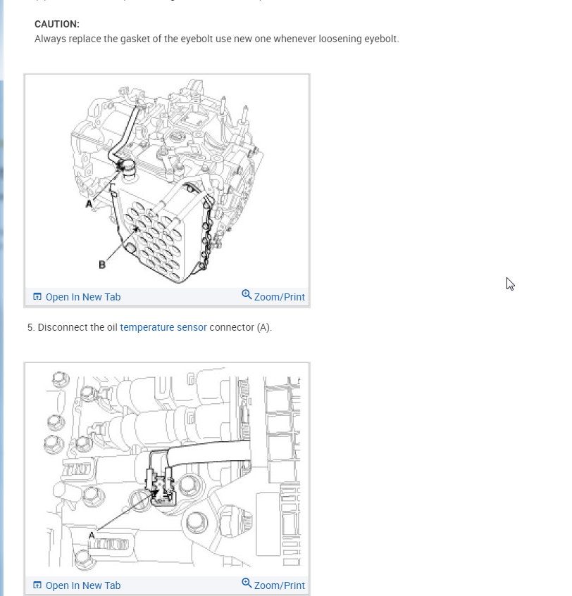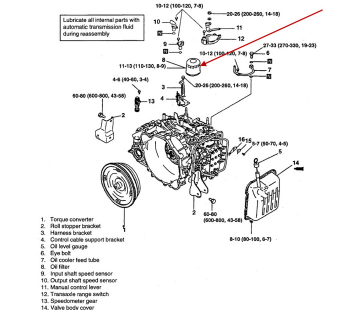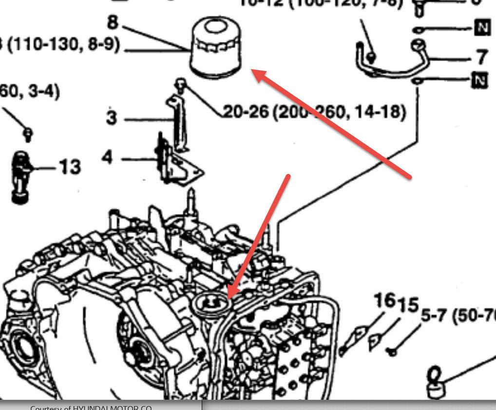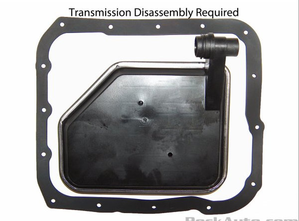 The transmission filter is interior to the transmission and does not require replacement unless you are rebuilding the unit. I included the info about the transmission temperature sensor. Also, a picture of the filter and diagram of the inlet to the filter and the pump. The manual does not have a specific process for the filter due to it not being a maintenance item.