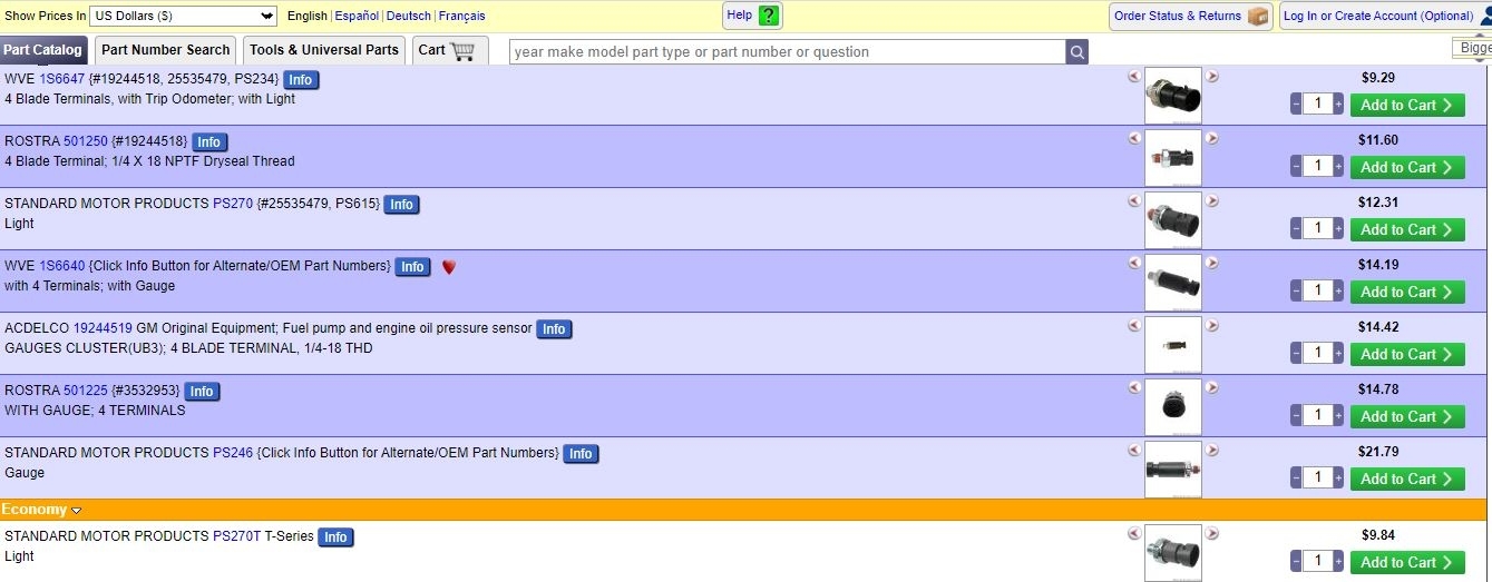 I need to change my oil pressure sensor. Went to RockAuto, they have GM 19244518 and 19244519 sensor. Which one is the good one? On Google they say it's the second option but they also said UB3 cluster option! I'm lost