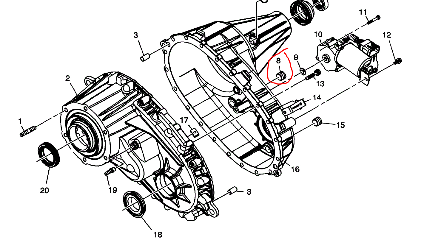 On the back side of the transfer case, you will see two plugs. One is higher than the other. Remove the top one and the fluid should be to the top of the bottom threaded opening.