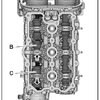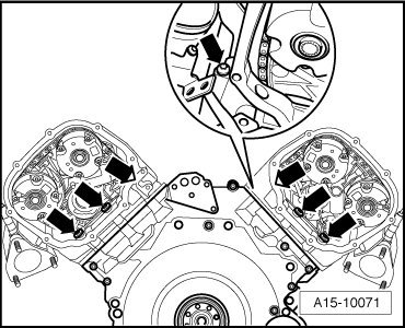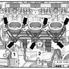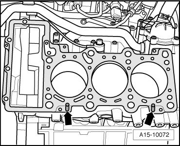 - Remove the bolts - arrows - on the rear of the cylinder head.