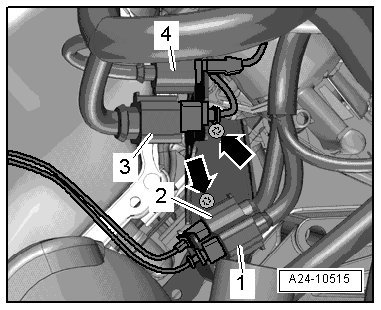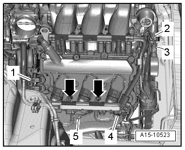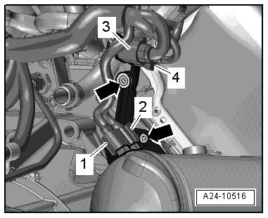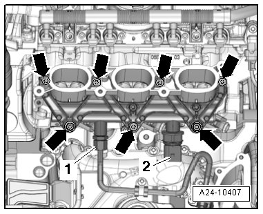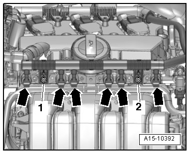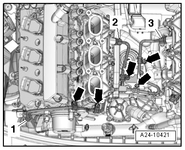 - Remove the threaded connection - 2 - and move the fuel supply line to the side.