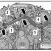 - Tighten the bolts in 3 steps following the sequence - 8 to 14 -. Refer to => [ Overview - Cylinder Head ] See: Cylinder Head Assembly > Removal and Replacement > Overview - Cylinder Head.