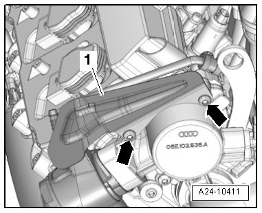 - Remove the protective plate - 1 - for the high pressure line - arrows -.