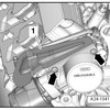 - Remove the bolts - arrows - on the retaining plates and the high pressure line.