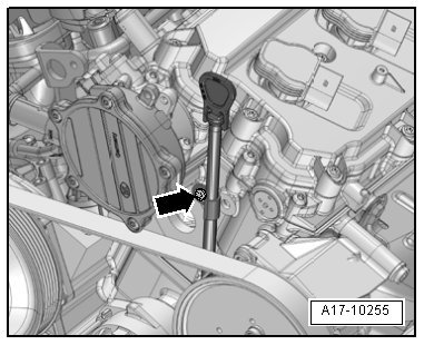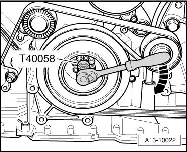 - Remove the ribbed belt. Refer to => [ Ribbed Belt, Removing and Installing ] See: Drive Belt > Removal and Replacement > Ribbed Belt, Removing and Installing.