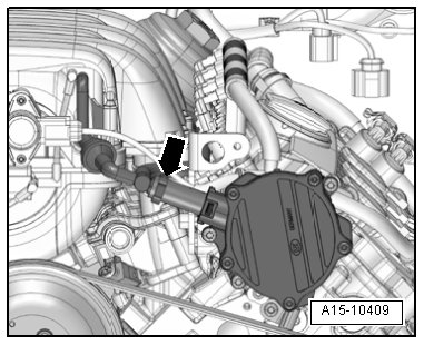 - Remove the vacuum hose from the vacuum pump - arrow - and free it up.