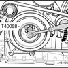- Remove the Camshaft Clamp (T40133) and the Crankshaft Locking Pin (T40069).