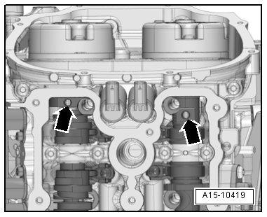 - Disconnect the right and left electrical connectors - arrows - on the camshaft adjuster actuators.