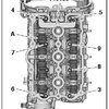 - Tighten the bolts in 3 steps following the sequence - 1 to 7 -. Refer to => [ Overview - Cylinder Head ] See: Cylinder Head Assembly > Removal and Replacement > Overview - Cylinder Head.