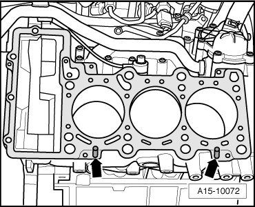 Pay close attention to centering pins - arrows - in cylinder block.