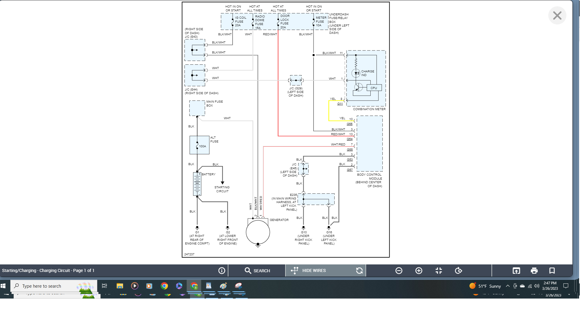 Hi, I had to replace the alternator. But the connector was damaged so I had to replace it, I sort of connect the wires except one that I can't find; it is a white that connects to the fuse, but I can't find it.