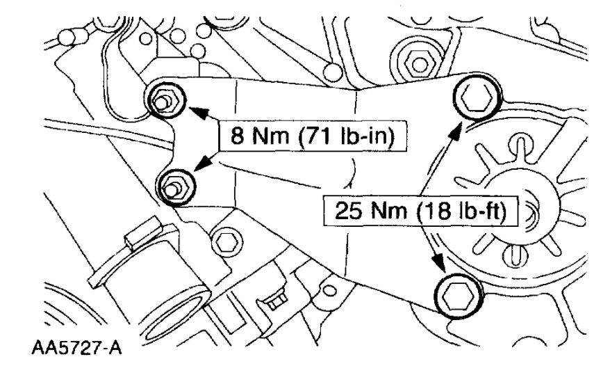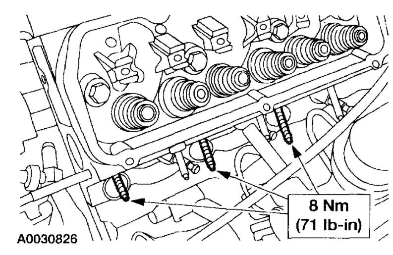 Tighten long bolts to 45 Nm (33 ft. lbs.), then tighten an additional 180 degrees.