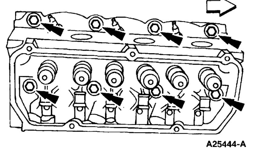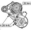 Tighten short bolts to 25 Nm (18 ft. lbs.), then tighten an additional 180 degrees.