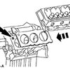 2. Install a new head gasket on the cylinder block with the small hole to the front of the engine.