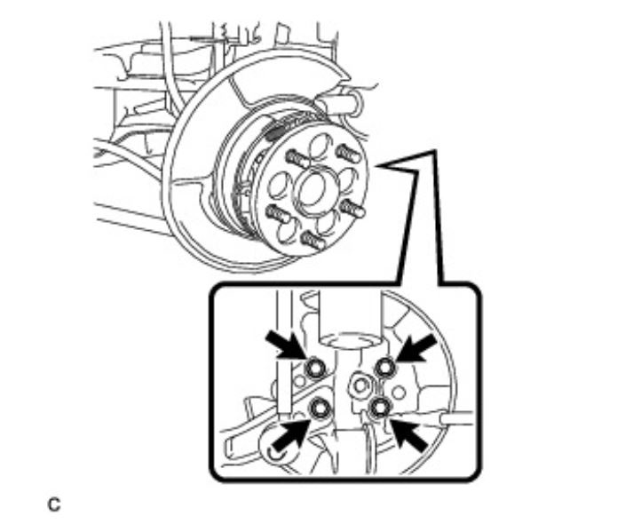 Remove the 4 bolts and the rear axle hub and bearing assembly from the rear axle carrier sub-assembly.