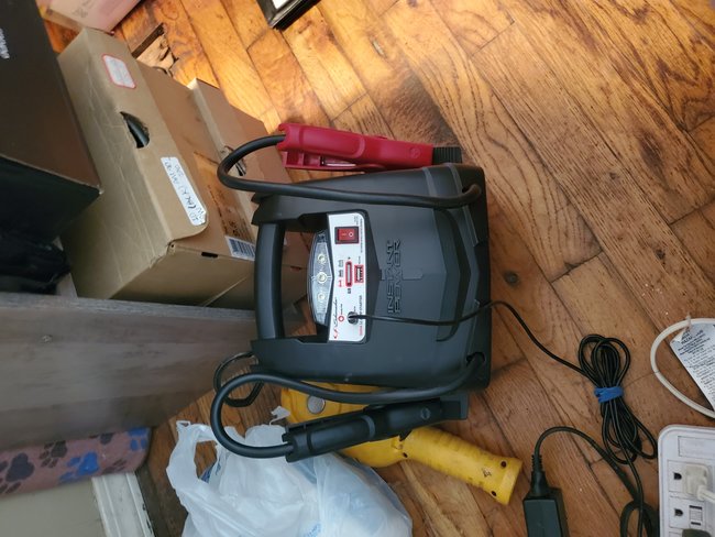 I bought this portable jump box and charged it all the way up to jump my car off, but when I hook it up to my battery and turn it on it will make a little clicking sound and if I open my door the lights will come on for a second then it goes off. When I take the jump box off it's still completely drained. Is this because my battery is too drained to jump off or I need a new battery?