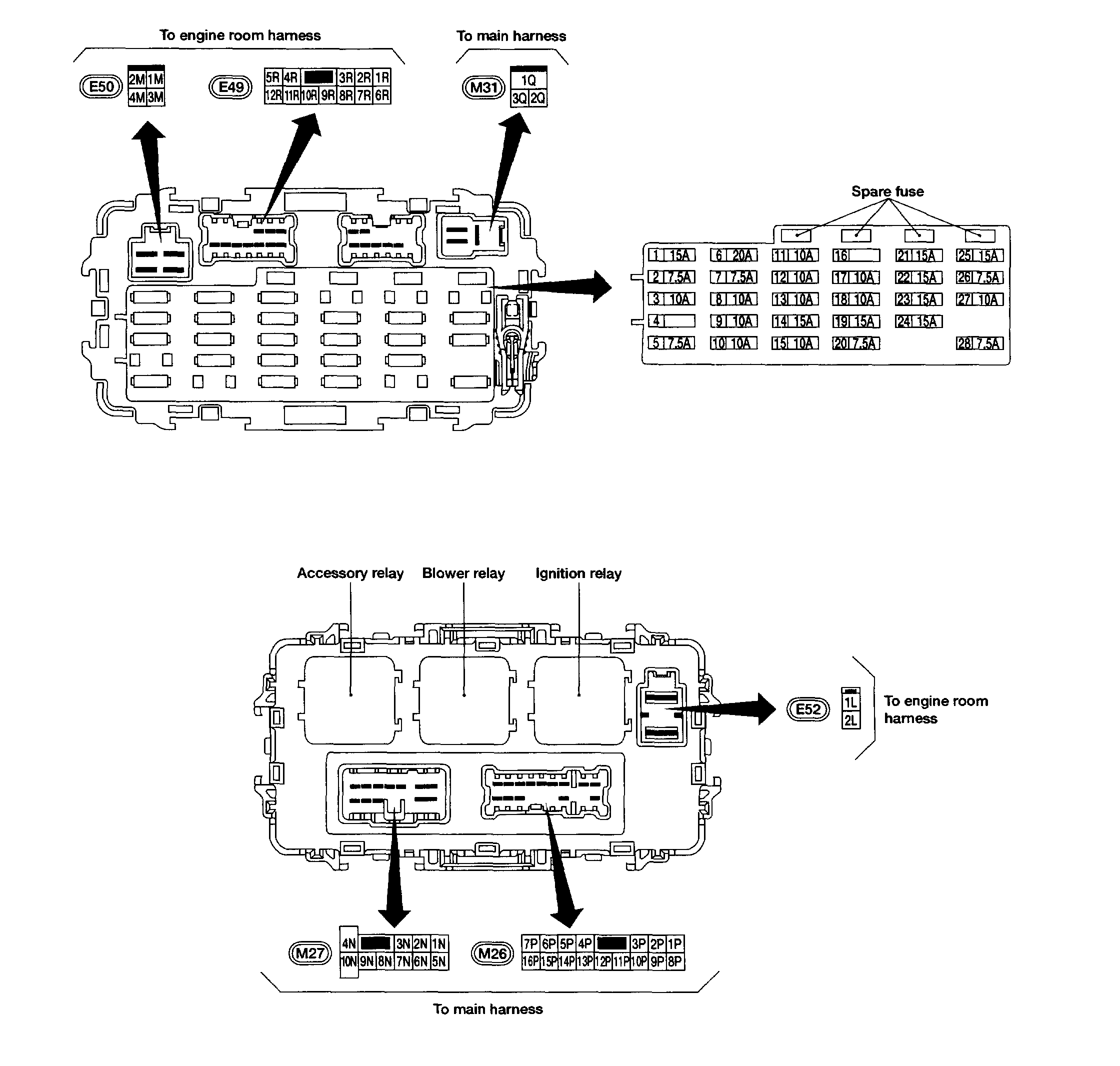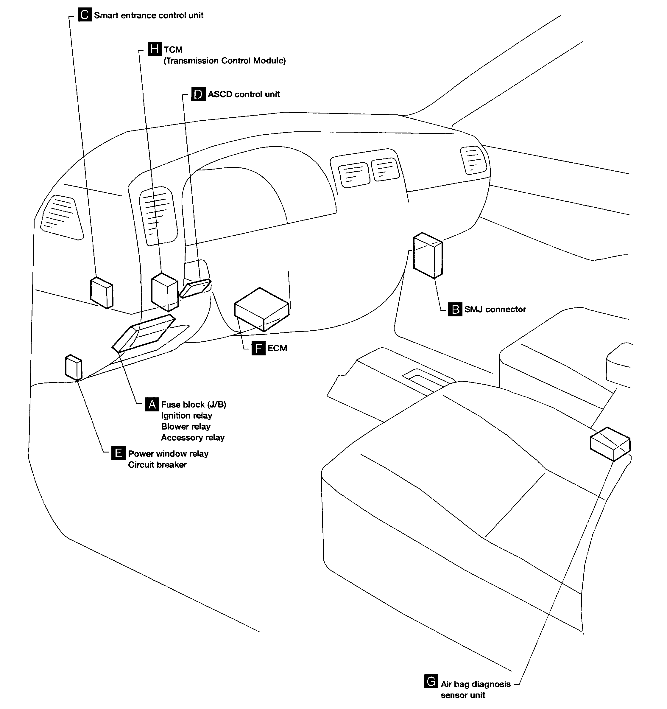 - through 7.5 A fuse [No.5, located in the fuse block (J/B)]