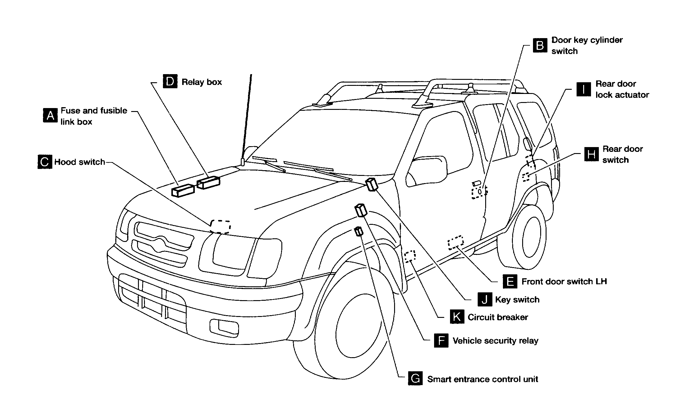 - through vehicle security relay terminals 3, 4 (models with power door locks) and