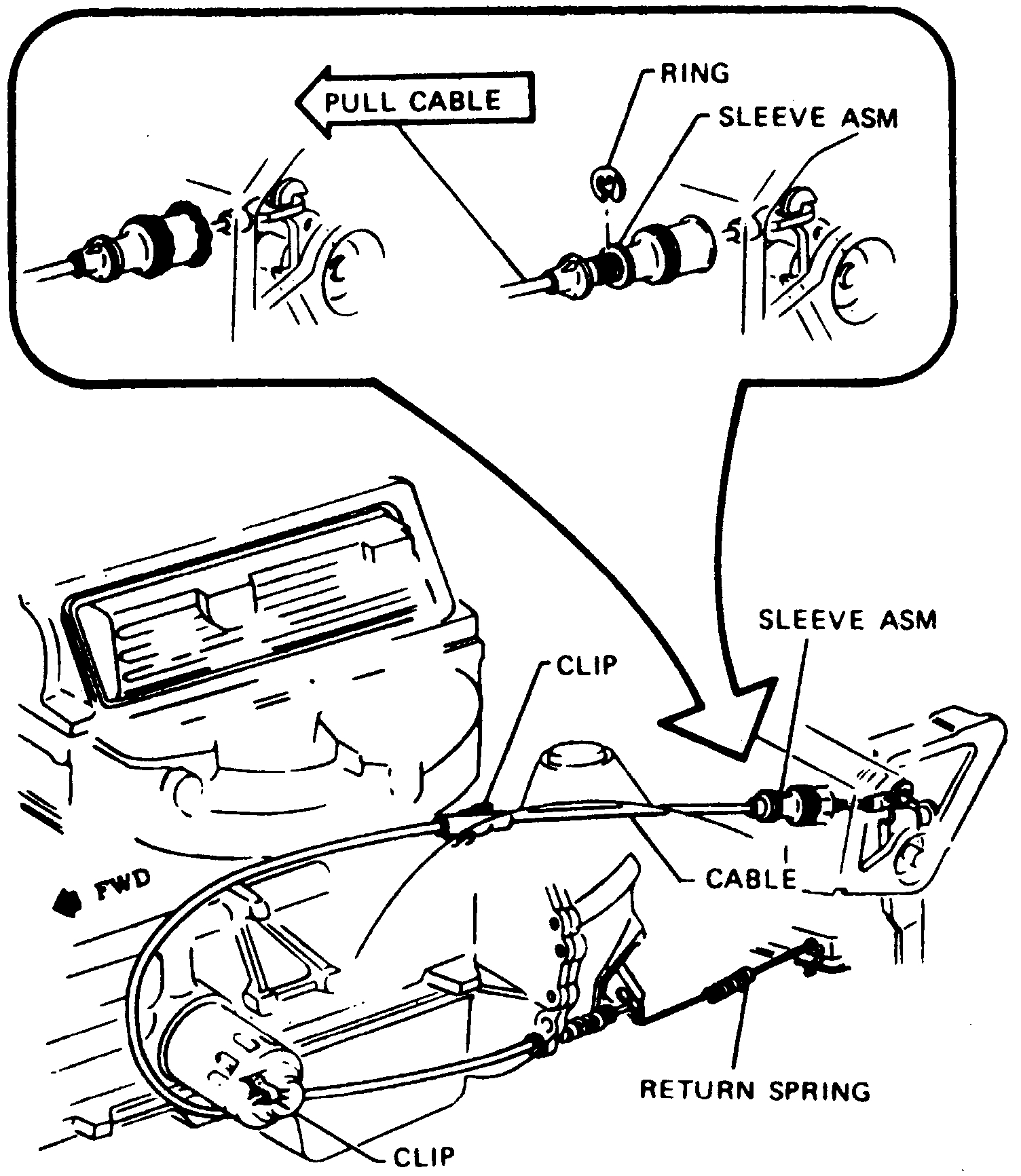 3. If clutch pedal lash is insufficient, remove snap ring from cable and allow cable to move into dash by one cable notch, then reinstall snap ring, Fig. 5.
